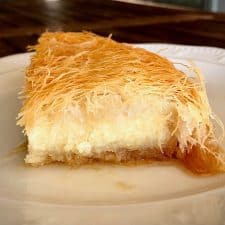 Pour the custard in a large tray, cover with some plastic wrap (the plastic wrarp should be touching the custard, so that it doesn’t form a crust) and let it cool, while you prepare the rest of the ekmek kataifi recipe.