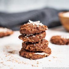 Take a large baking sheet and line with parchment paper or a non-stick silicone baking mat. Scoop cookie batter onto baking sheet into 20 cookies and flatten with a spoon.
