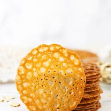 Remove from the oven and slide the silicone liner off the baking sheet and directly onto the countertop. Allow to sit until cool and crisp, 3 to 5 minutes, then gently peel cookies off the liner. Repeat to bake remaining batches.