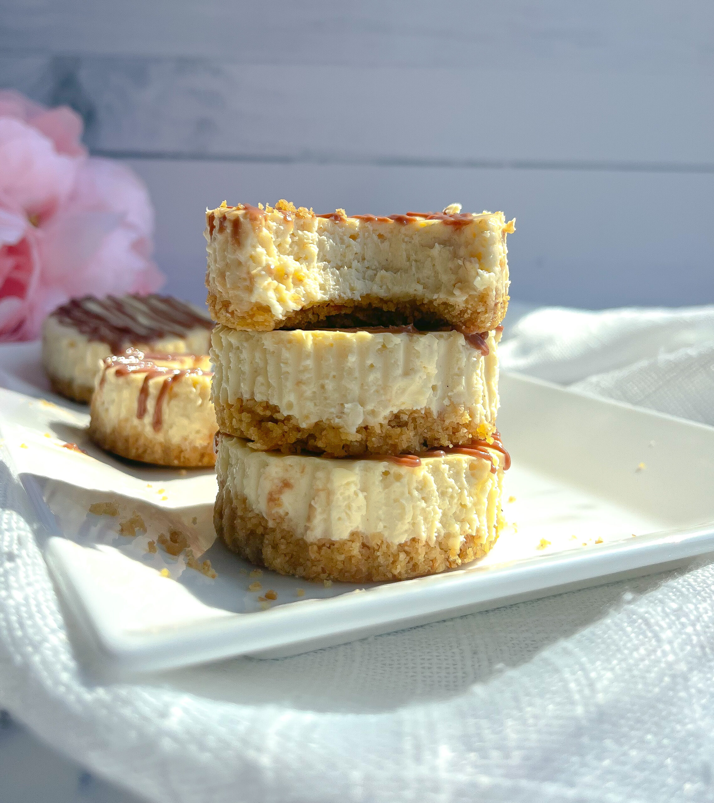 Being careful not to disturb baked crusts, brush inside of pans with remaining 1 tablespoon melted butter and place pans on rimmed baking sheet. Pour filling evenly into cooled crusts, smooth tops, and bake cheesecakes for 2 minutes. Without opening oven door, reduce temperature to 200 degrees and continue to bake until cakes register 150 degrees, 12 to 17 minutes, rotating sheet halfway through baking.