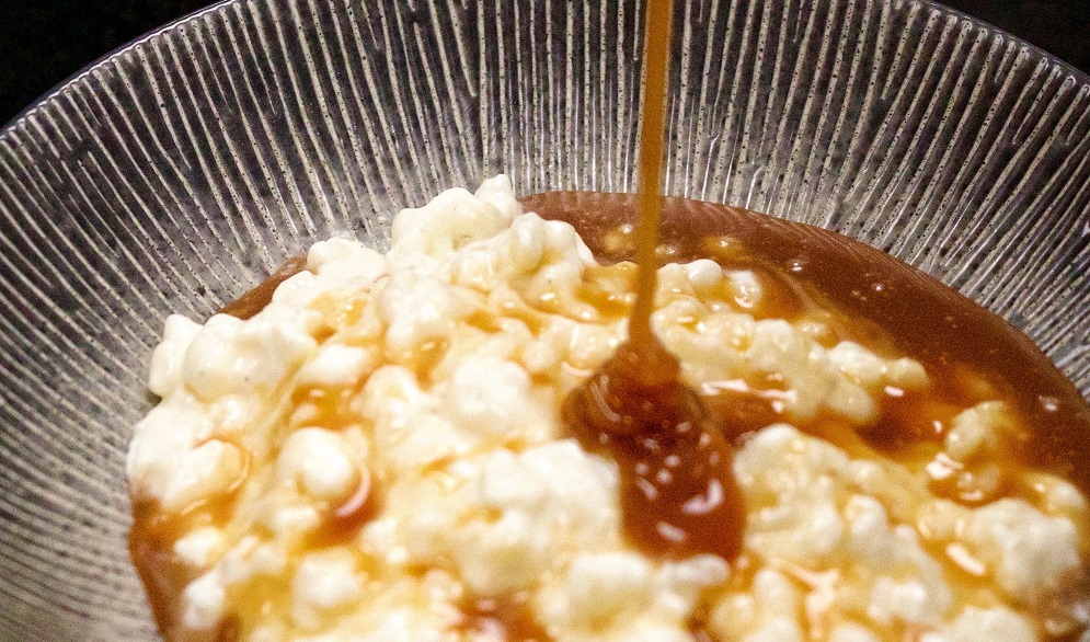 Mélanger petits pois/oignon/saucisse/œuf et ajouter la sauce soja en la laissant s'évaporer un peu.