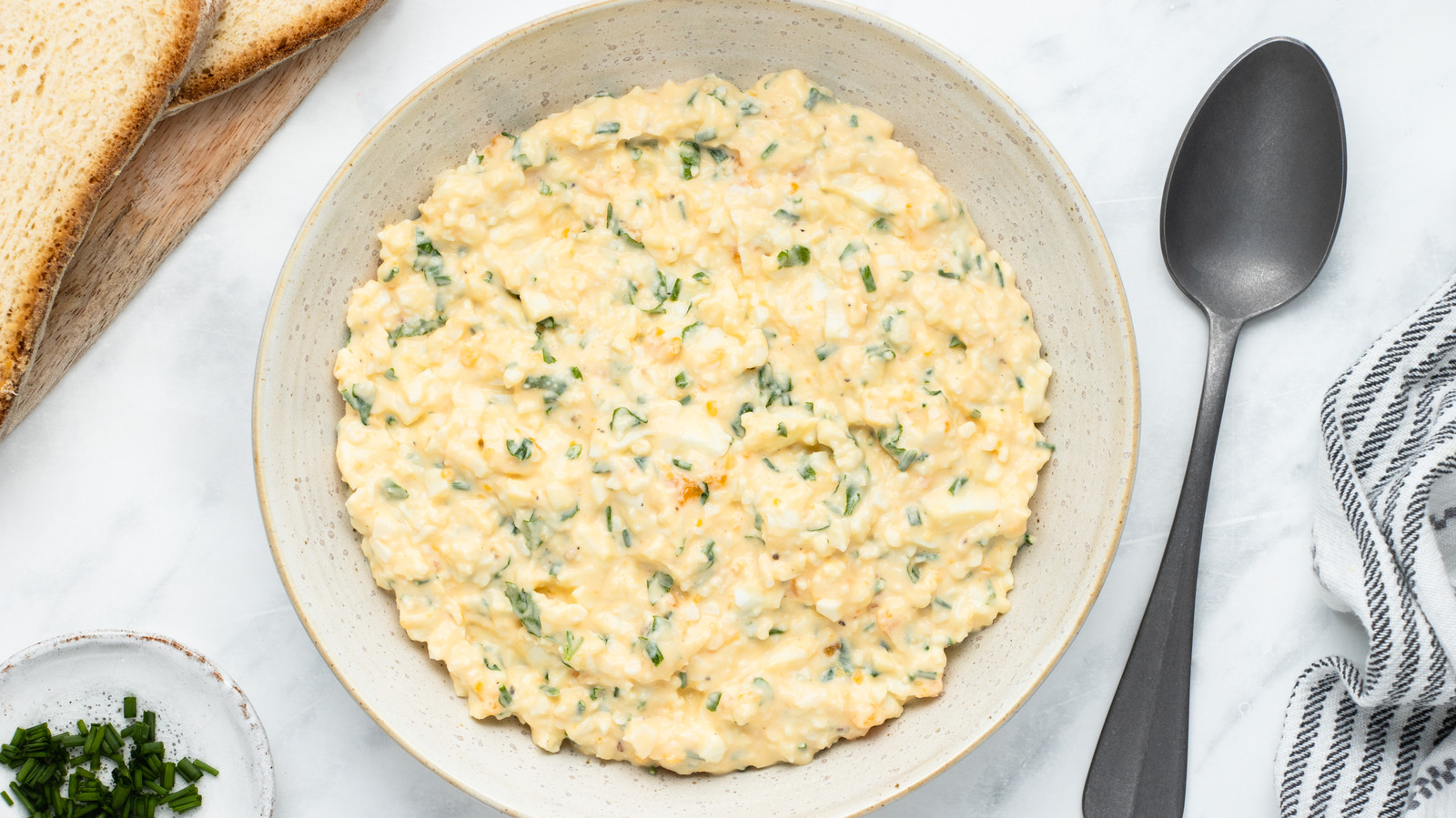 Store egg salad in refrigerator until ready to serve. Serve cold on sliced bread with lettuce.